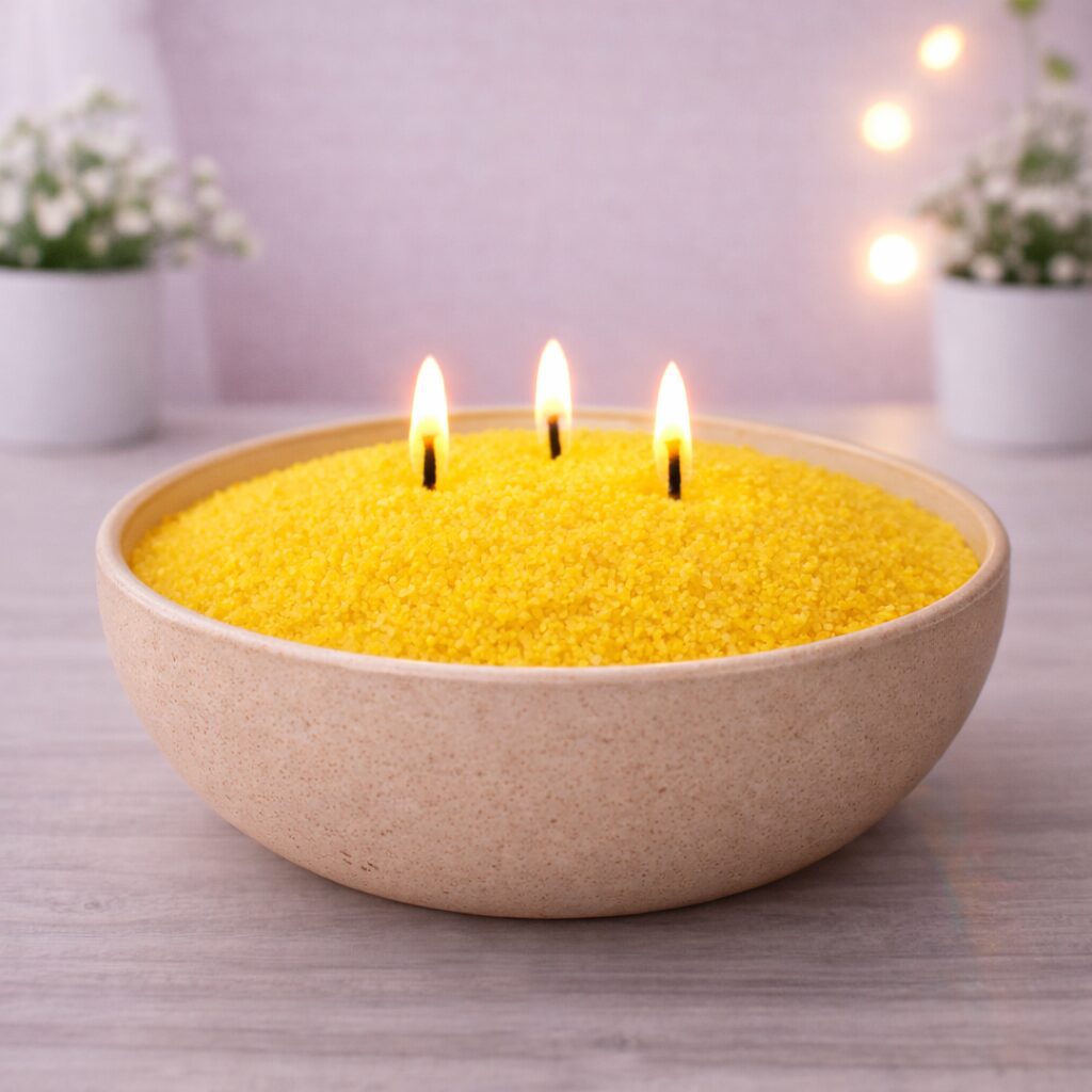 Met kaarsenzand kun je je creativiteit helemaal laten gaan. Er zijn namelijk tal van mogelijkheden om je eigen kaars te maken. Voeg bijvoorbeeld geurolie of kleurstoffen toe voor een persoonlijke touch. Of meng verschillende soorten zand om een stralend effect aan je kaarsen toe te voegen.