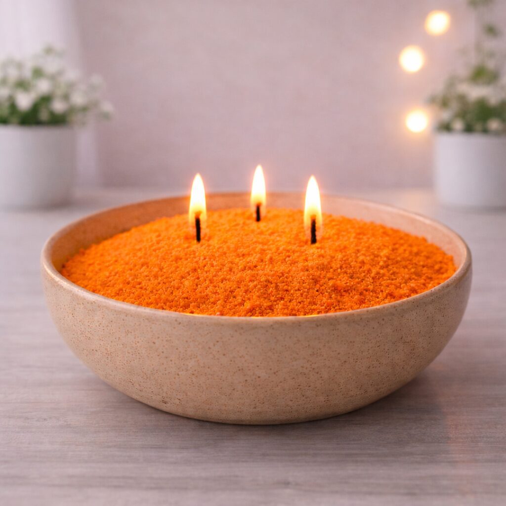 Kaarsenzand is een creatieve en eenvoudige manier om zelf kaarsen te maken. Het bestaat uit poederachtig waszand waarmee je een pot of container kunt vullen. Dat zorgt voor vele praktische voordelen. Daarnaast biedt kaarsenzand ook veel creatieve mogelijkheden door bijvoorbeeld geurolie en kleurstoffen toe te voegen. Zo zet je je interieur helemaal om naar je eigen wensen. Perfect voor een gezellige sfeer in huis.