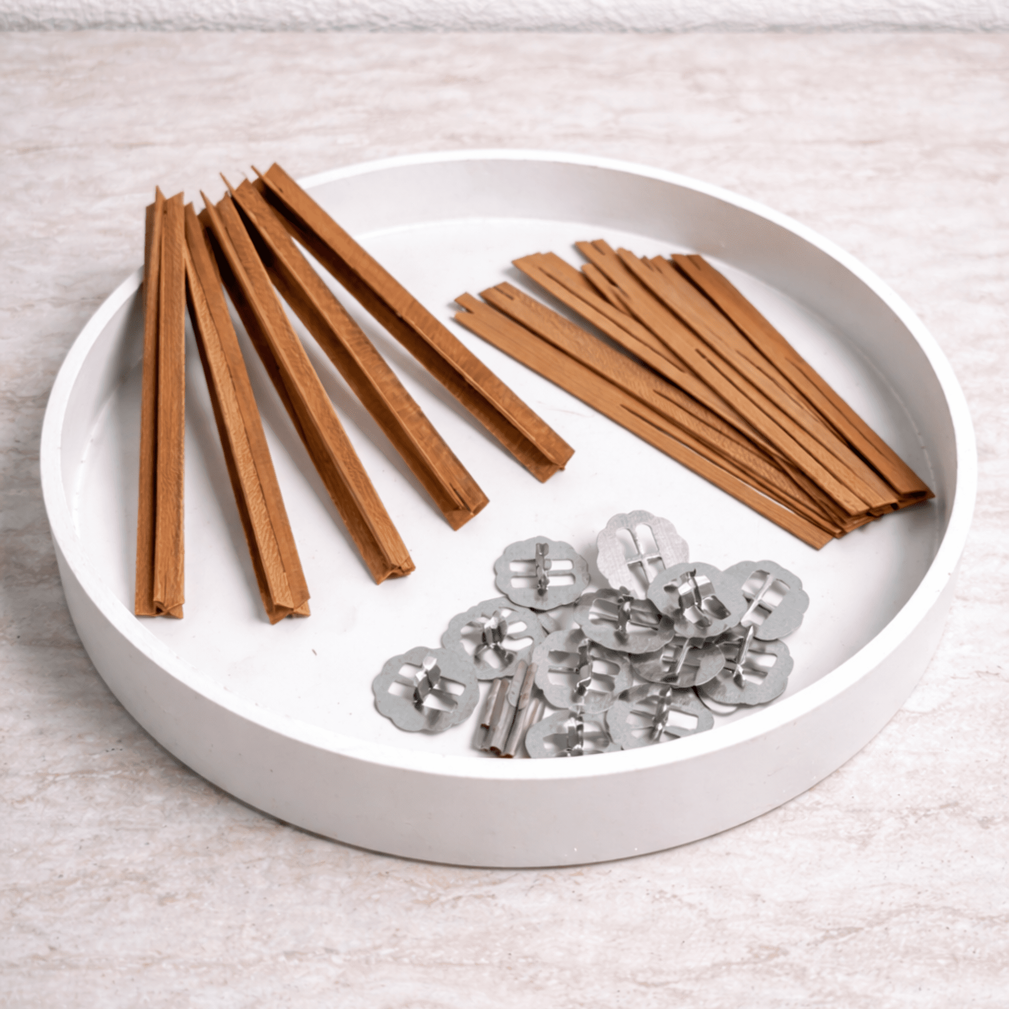 Houten lonten geven je kaarsen een moderne uitstraling en een bijzondere brandbeleving. Ze zorgen voor een brede, rustige vlam en kunnen tijdens het branden een zacht knisperend geluid geven. Ideaal voor potkaarsen en grotere kaarsen waarbij je een gelijkmatige smeltpool wilt creëren. Met een houten lont geef je jouw kaarsen een stijlvolle en unieke touch.